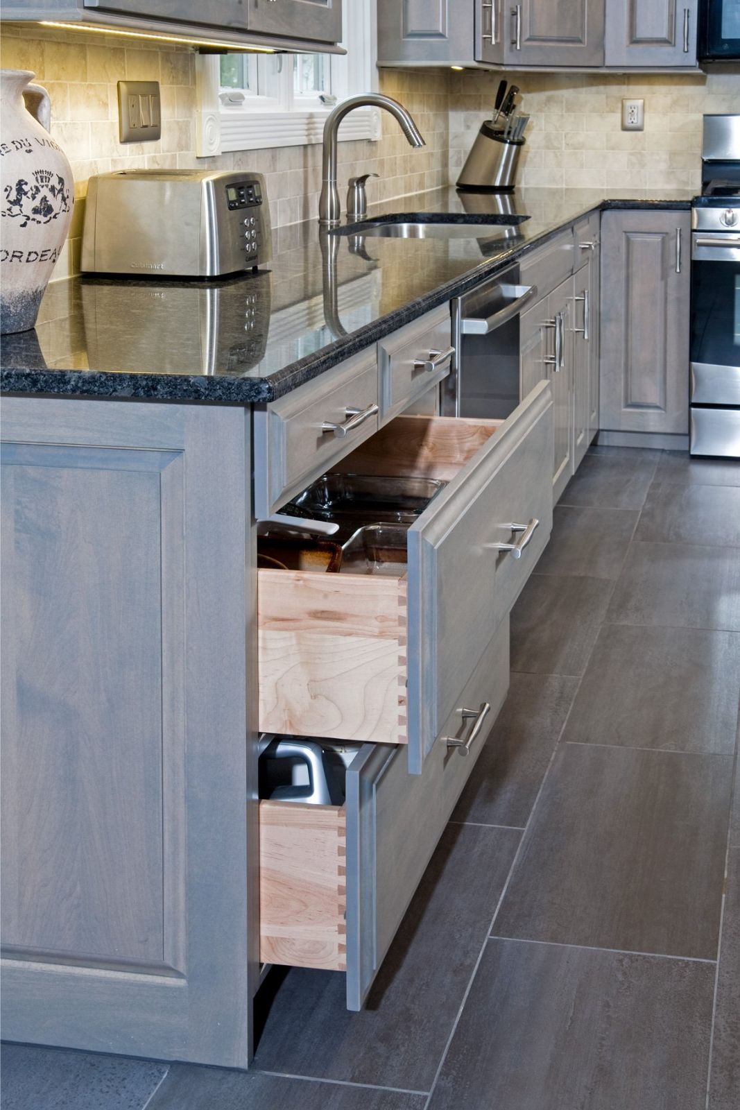 Our kitchen is so much more functional. Wide, deep drawers, slide-out shelves, and more storage. We are very happy with the results!